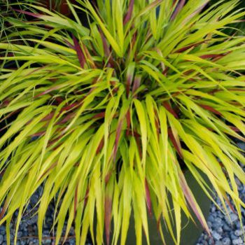 Opis produktu Hakonechloa macra 'Sunflare' (trawa bambusowa)